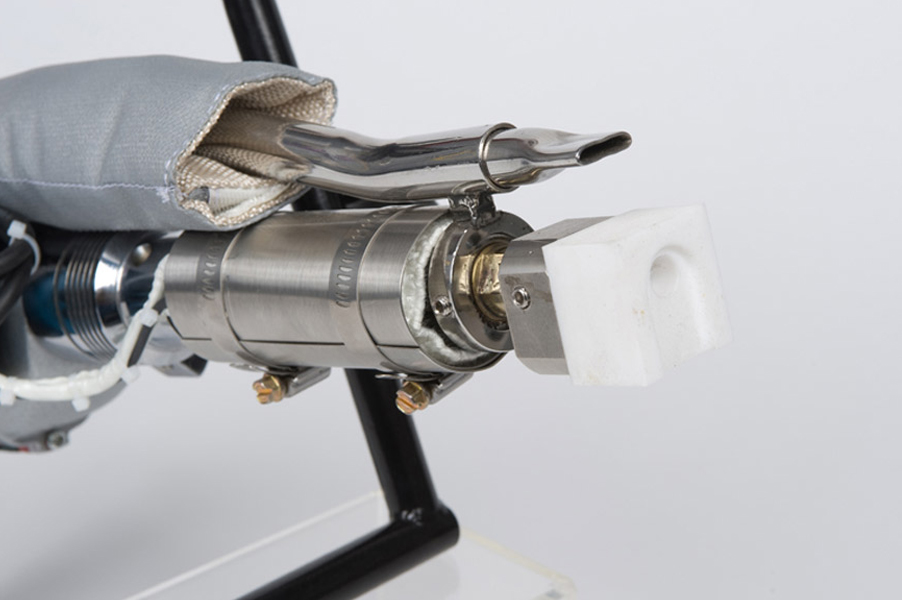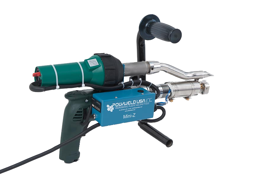 Extrusora de soldadura portátil y ligera diseñada para aplicaciones profesionales de soldadura de plásticos. Con motor personalizado, armadura y campo garantizado, diseño de barril ligero y tornillo, y conectores de estándar militar para la caja de control.